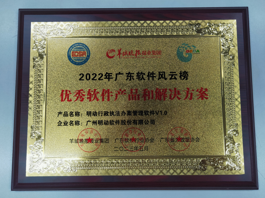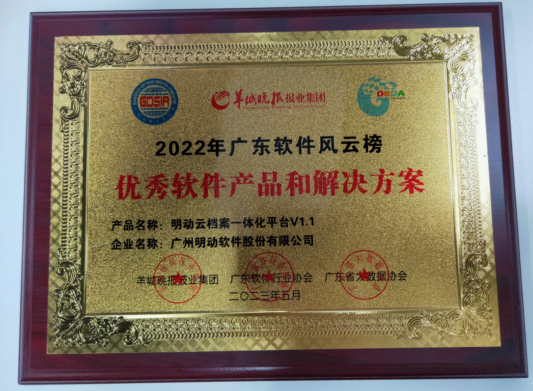 此外,明動行政執(zhí)法辦案管理軟件、云檔案一體化平臺兩大產(chǎn)品入圍“2022年廣東軟件風(fēng)云榜優(yōu)秀軟件產(chǎn)品和解決方案”!
